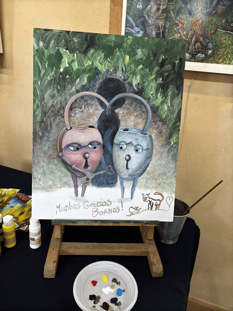 Zamek, prawdziwy symbol tej okolicy, okazał się idealnym tłem do podziwiania dzieł Krzysztofa Kosowskiego. Położony w sercu Bornos, Zamek-Pałac Rodu Ribera przypomina nam o bogatym dziedzictwie historycznym tego urokliwego miasteczka, słynącego z piękna otaczającej przyrody i spokoju, który urzeka każdego odwiedzającego.